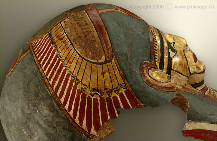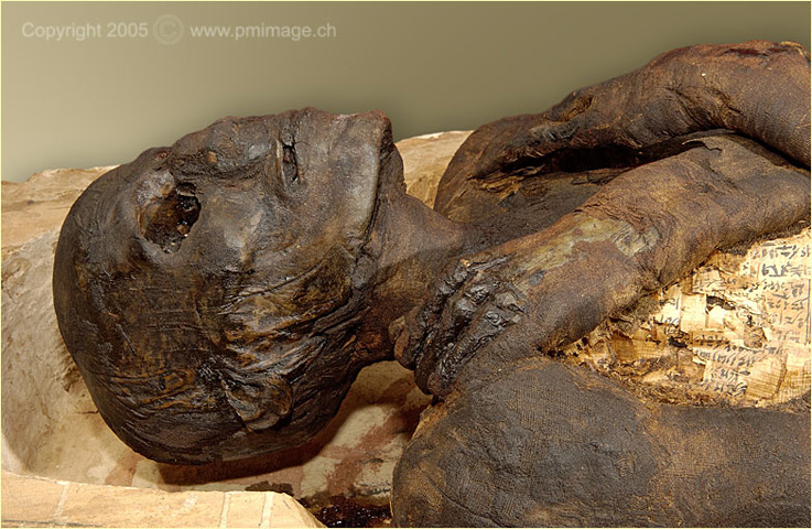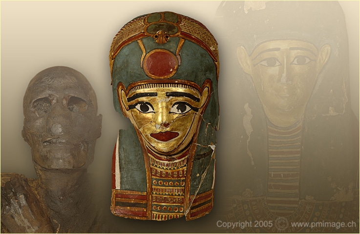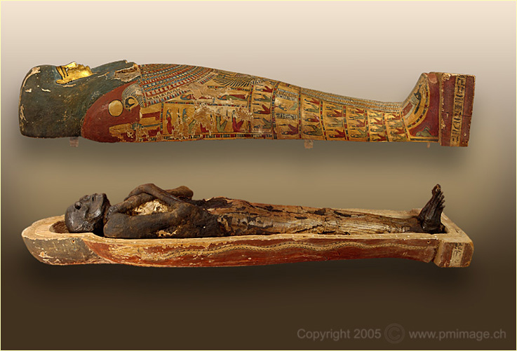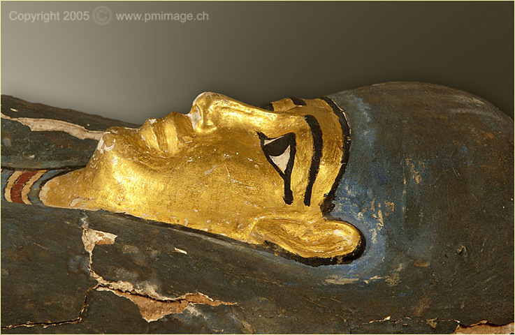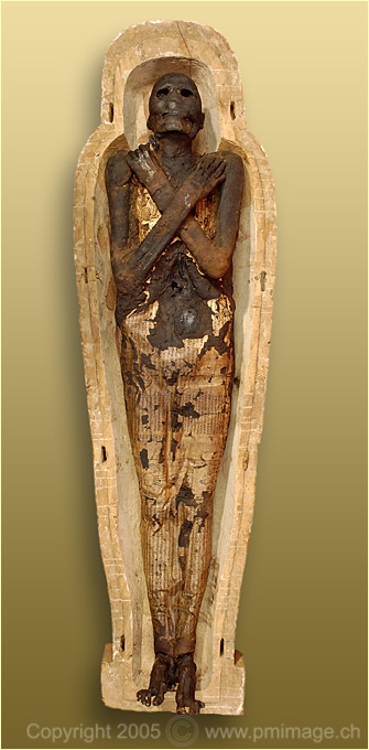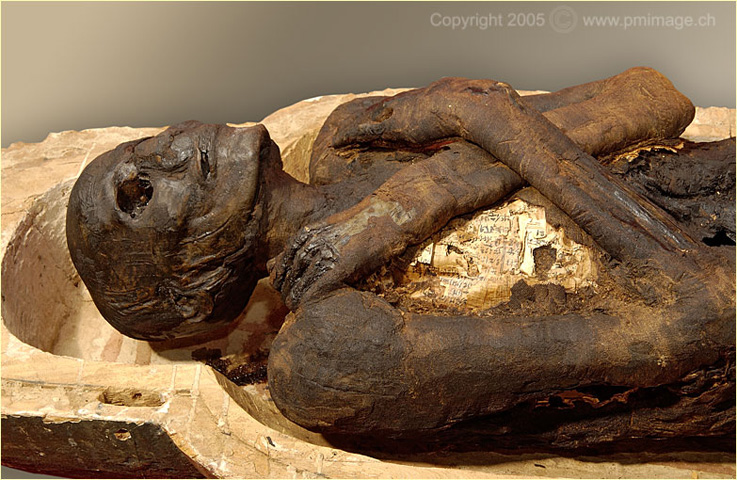 Musée du Château, Yverdon-les Bains coffin, mummie and masks (Nes-Schu)